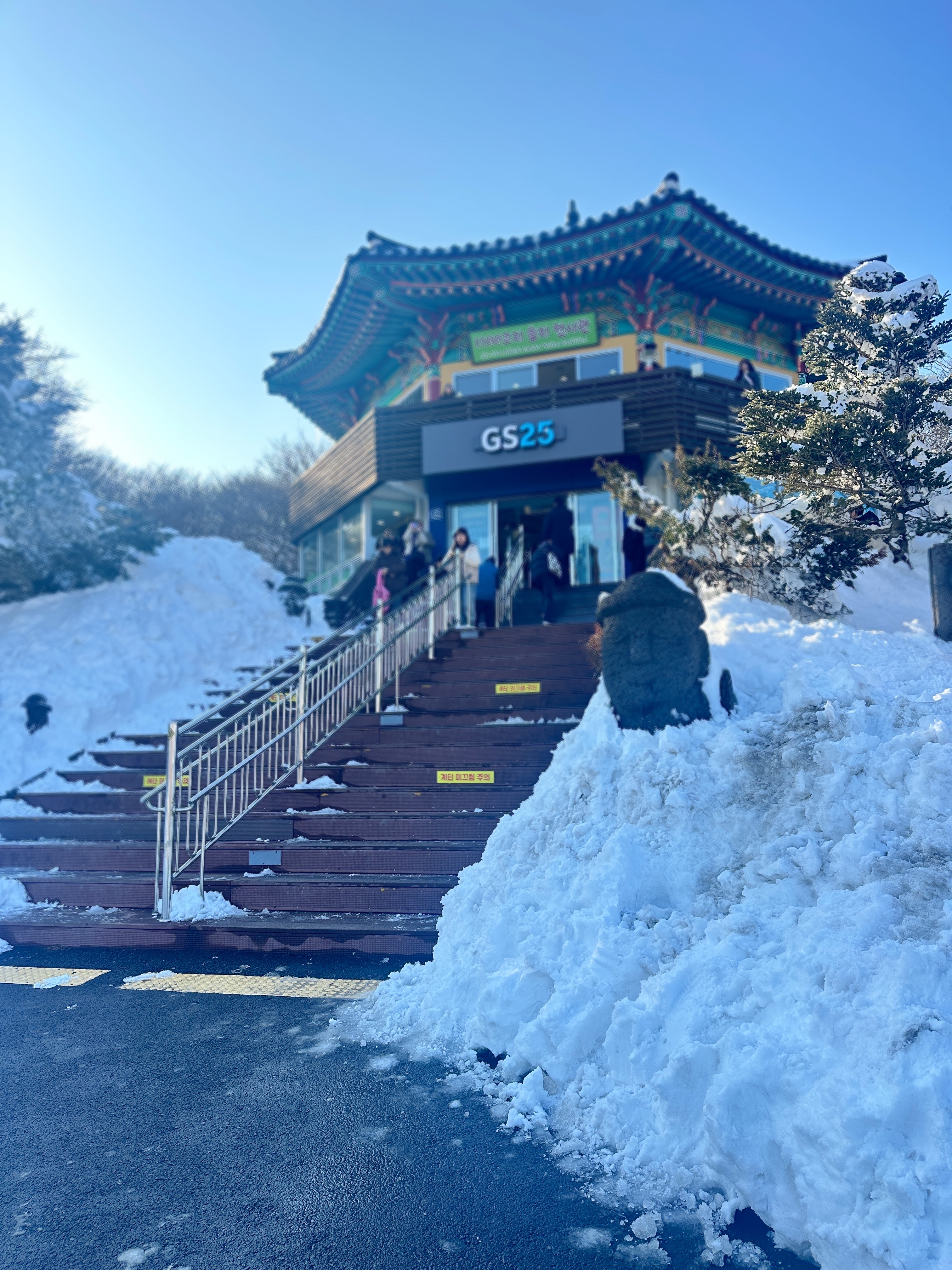 ✔️ 테이블에서 힐링: 전망대 옆 테이블에서 눈 덮인 한라산을 보며 먹으면 감동이 두 배!
